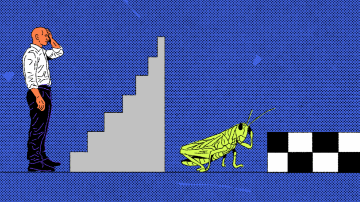 В чём задача: есть человек внизу лестницы или кузнечик перед полосой из клеток. Человек передвигается по лестнице вверх, кузнечик — по клеткам вперёд. Перемещаться можно на 1 или 2 ступени или клетки. Вопрос в том, сколькими способами можно дойти до определённой ступени или клетки?